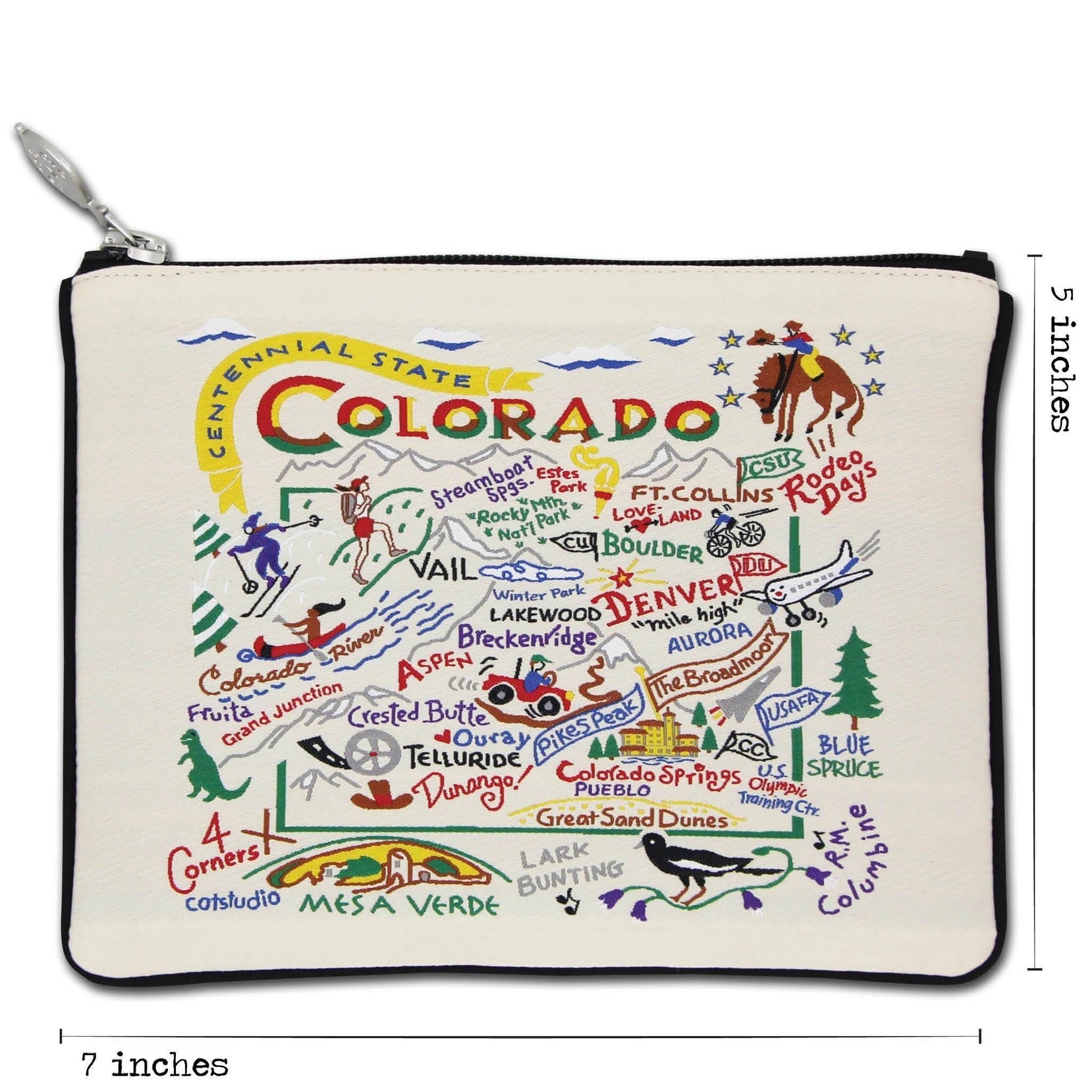 Add a touch of celestial charm to your essentials with this beautifully woven makeup bag, crafted from luxe poly. Featuring stunning artwork in metallic and vibrant threads, it includes a custom gold star zipper pull and a signature blue constellation lining, making it as stylish as it is functional.