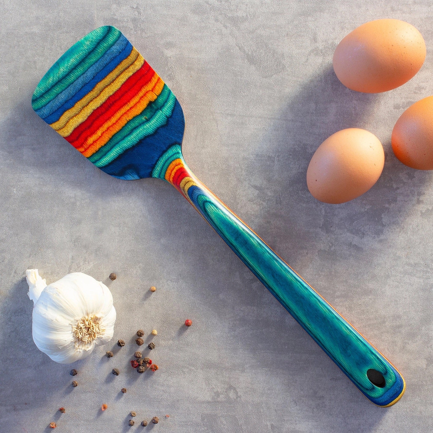- Striking Design: The warm mélange of colors makes this spatula an eye-catching addition to your kitchen tools.