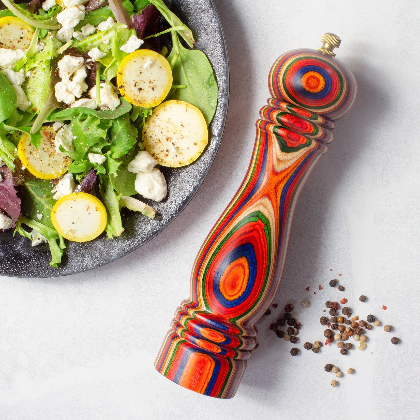 Elevate your culinary experience with the Baltique® Marrakesh Pepper Grinder! This stunning pepper mill combines classic design with a vibrant burst of color, inspired by the lively marketplaces of Marrakesh. Crafted from layers of colored birch wood, it not only looks beautiful on your table but also enhances your cooking with freshly ground pepper tailored to your taste.